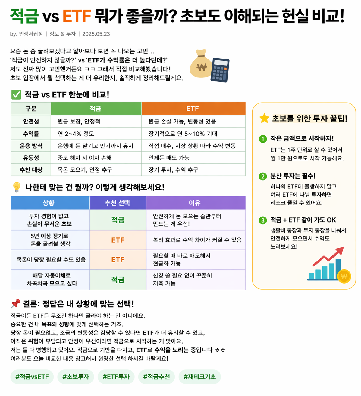 ## 🤔 적금이냐 ETF냐… 아직도 헷갈리셨쥬?